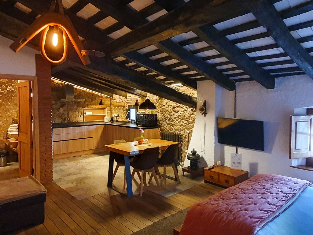 Todas las casas se han reformado siguiendo una misma línea y son similares, conservando las paredes de piedra y se han añadido elementos de materiales naturales, como la madera, que aportan personalidad y calidez. La iluminación tiene un papel destacable en el encanto de las casas, ya que crea un ambiente muy especial y relajante en todas las estancias, por la luz suave y cálida y por las originales lámparas utilizadas (ramas de árbol, troncos, antiguos molinillos de café…)