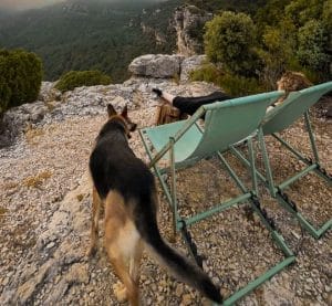 Dentro de la finca y a sólo un par de minutos andando de la masía se va, por un pequeño sendero, hasta unos acantilados con espectaculares vistas a las montañas de Prades. Allí han habilitado unas butacas de madera para contemplar el paisaje y las puestas de sol. Es un lugar inigualable y resulta conmovedor disfrutar de la inmensidad de las montañas y del silencio que las envuelve. El mejor lugar de la masía donde retirarse unos minutos a contemplar el atardecer, antes de disfrutar de una deliciosa cena casera.