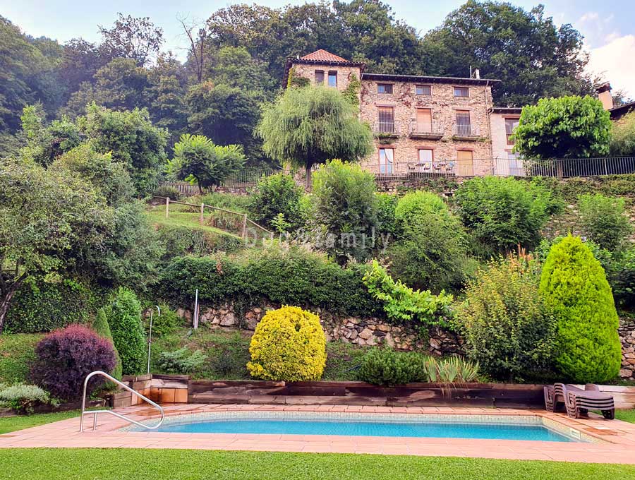 La casa, un antic casalot construït com a casa d’estiueig, a començaments del segle XX, conserva l’arquitectura dels edificis de la zona. Rehabilitada mantenint la seva estructura, consta de quatre plantes i de dues zones enjardinades. Una terrassa amb taules convida a passar-hi bones estones contemplant l’impressionant paisatge. També una barbacoa i una piscina asseguren moments divertits a l’estiu. Un petit riuet corre pel costat del jardí i fa que encara resulti més agradable.