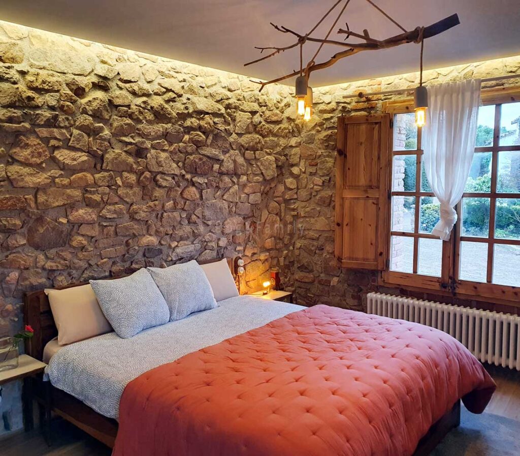 Totes les cases s’han reformat seguint una mateixa línia i són similars, han conservat les parets de pedra i s’han afegit elements de materials naturals, com la fusta, que aporten personalitat i calidesa. La il·luminació té un paper destacable en l’encant de les cases, ja que crea un ambient molt especial i relaxant en totes les estances, per la llum suau i càlida i per les originals làmpades utilitzades (branques d’arbre, troncs, antics molinets de cafè…)
