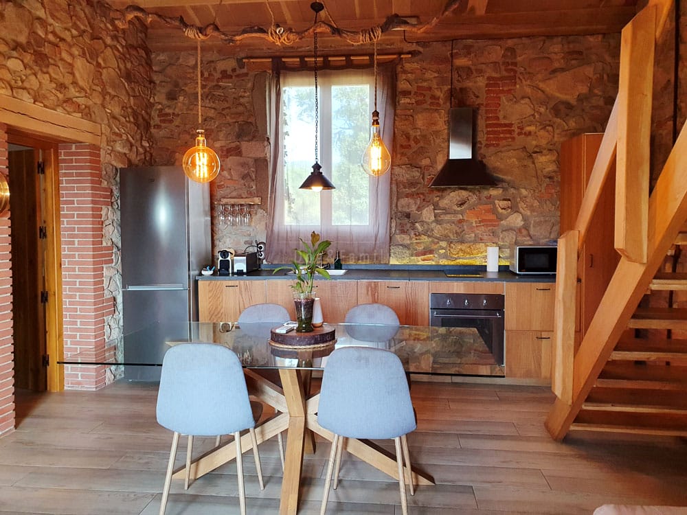 La seva ubicació, entre Arbúcies i Viladrau, en una plana dalt d’un turó i al davant del massís del Montseny, és tot un privilegi. Per arribar-hi, s’han de fer algunes corbes, però val la pena perquè gaudiràs d’un autèntic luxe: la calma que garanteix aquest enclavament, aïllat i envoltat de boscos. Els allotjaments han estat rehabilitats amb respecte i molt bon gust, per sentir-te, tant en el seu interior, com a les seves terrasses exteriors, en total harmonia amb l’entorn.