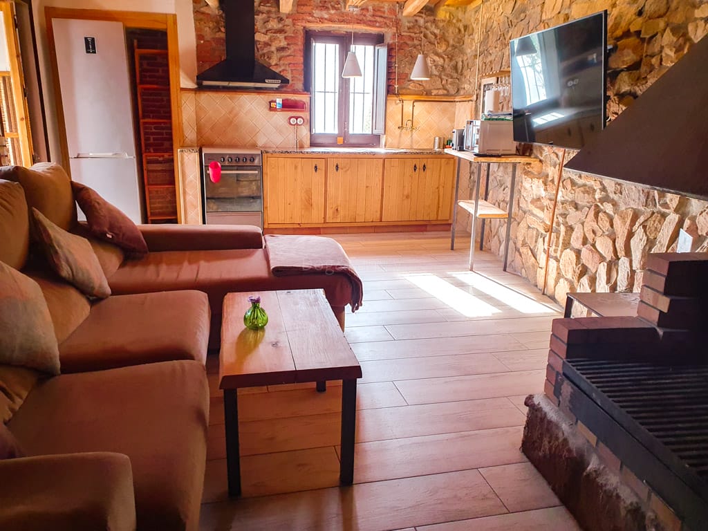 Es tracta d’una masoveria de 2 plantes per a un màxim de 4 persones. A la planta baixa hi trobem un càlid menjador amb cuina, un sofà davant una gran xemeneia i un televisor. Al primer pis hi ha dos dormitoris, cadascun amb un llit de matrimoni i un bany amb banyera i servei. Sens dubte, el gran atractiu de la casa és la seva espectacular terrassa amb vista al parc natural.
