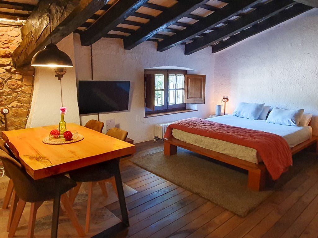 Disposa de 2 llits de matrimoni, un petit office molt complet, sofà amb televisió i un lavabo amb dutxa. És ideal per a parelles o famílies que busquen tranquil·litat i descans de qualitat. Les vistes al parc natural us proporcionen la llum i la intensitat per fer d’aquest espai un lloc molt especial.