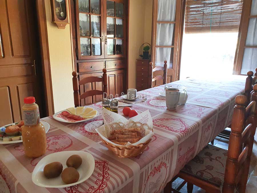Casa la Huerta es una casa de turismo rural compartido, la vivienda se comparte con sus propietarios, Marisa y sus hijos, pero las habitaciones tienen su privacidad porque quedan a un lado de la casa, separadas por el comedor que es la zona común. Si lo deseas, opcionalmente puedes pedir un desayuno muy completo con pan de payés, embutidos y quesos, mermeladas, fruta, zumos, café, magdalenas…
