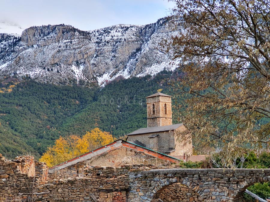 Jose me recomendó también que visitara alguno de los pueblos del valle de Bardají, como Aguascaldas, Llert o Esterún. Pequeños municipios, casi despoblados, que permanecen medio escondidos detrás de las montañas, las carreteras de acceso son estrechas pero vale la pena ir. Sus pocos habitantes han vivido siempre de la ganadería y el siglo pasado, como en muchos otros pueblos del Pirineo, la gente joven los fue abandonando. Actualmente resulta sorprendente (y gratificante para quien busque silencio y tranquilidad) su aislamiento, teniendo en cuenta que el Eje Pirenaico, la N-260, queda a pocos km.