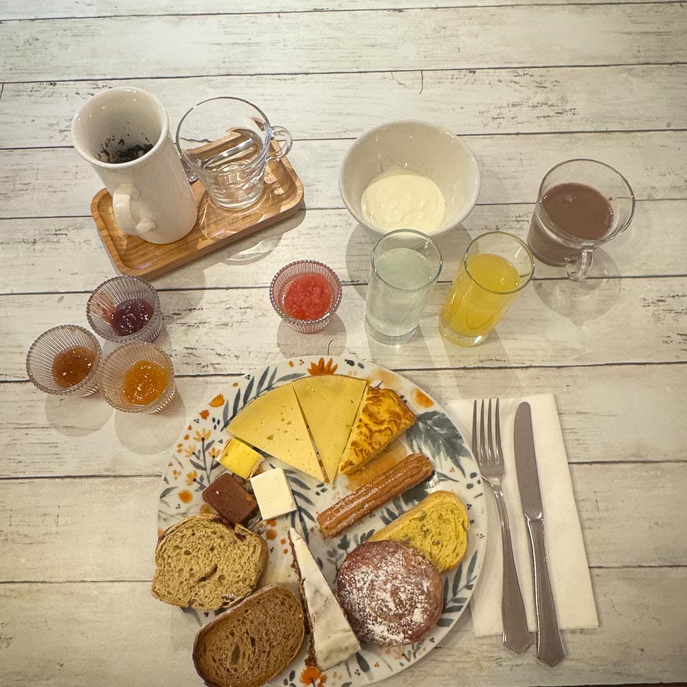 El desayuno es un amplísimo buffet con variadas propuestas, dulces y saladas, que te permitirá empezar el día con energía. Como, una selección de quesos, embutidos, pastas, pasteles, diversos tipos de panes, mermeladas, tortilla de patatas, platos calientes, leches de diferentes tipos, yogures, kéfir, cafés, tés, infusiones, cereales, chocolate con churros… Y otras opciones más ligeras, como zumos detox y frutas. A la hora de desayunar tu perro puede acompañarte en el comedor principal del hotel.