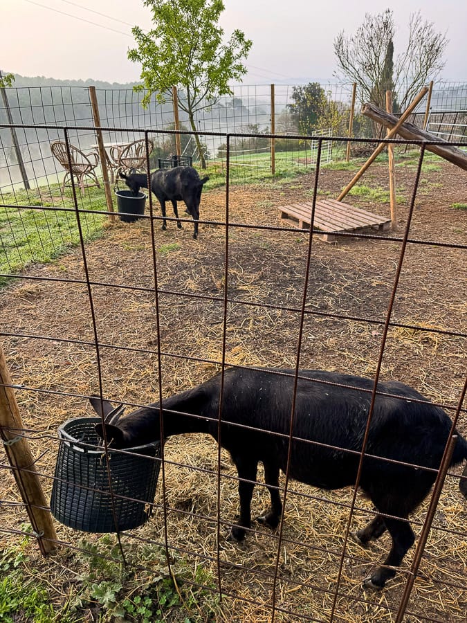 Pol y Lola cuidan el huerto de la finca y de todos sus animales. Cuando vayas, te dejarán en la cocina algún producto de su huerto, según la temporada. Quizás también huevos de sus gallinas o un exquisito mató de las cabritas. También elaboran artesanalmente licores como ratafía o limoncello, que puedes degustar y comprar.