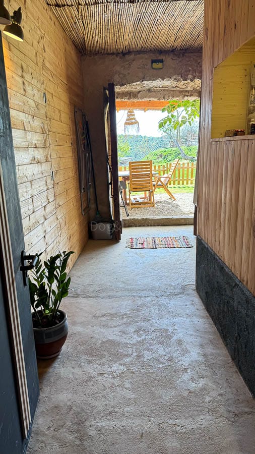 En la parte exterior encontrarás, unas hamacas de madera, una mesa debajo del porche, un banco y sillas y también una barbacoa por si deseáis hacer alguna comida a la brasa.